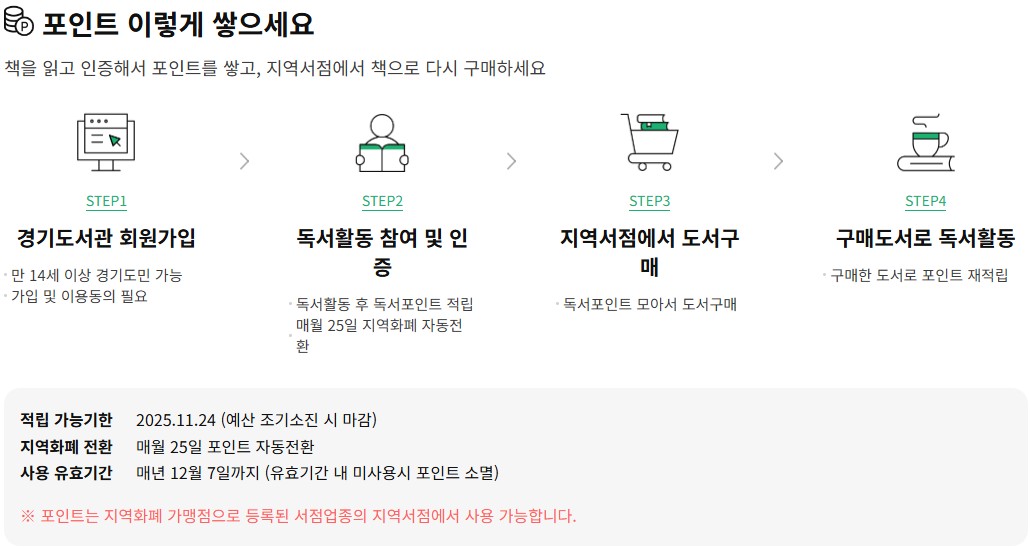 이 포인트는 매달 지역화폐로 전환되어 실제 오프라인 서점에서 사용할 수 있어요.